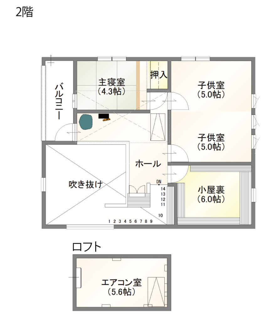 - 家庭用の14畳用エアコン1台で全部屋を冷房